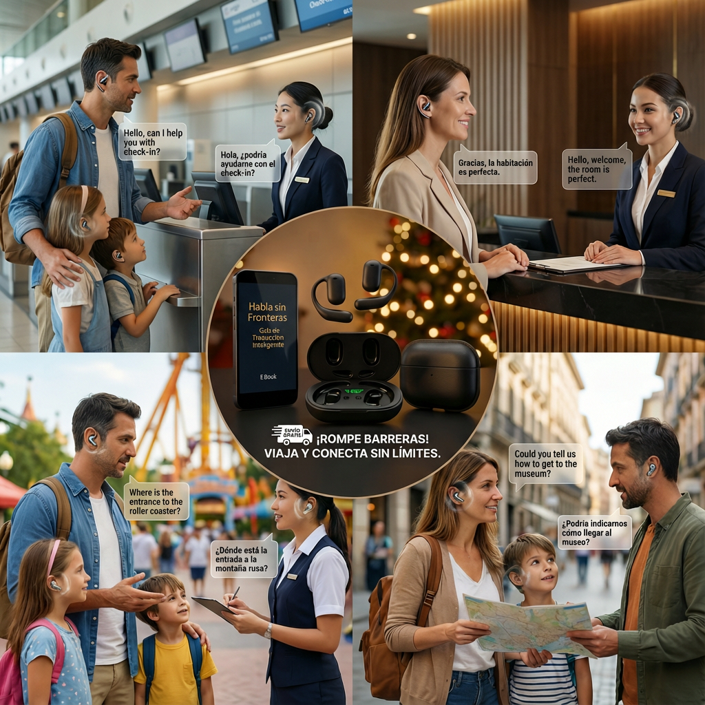 Te ponés los auriculares, abrís la app y hablás normal. La traducción se escucha en tiempo real.